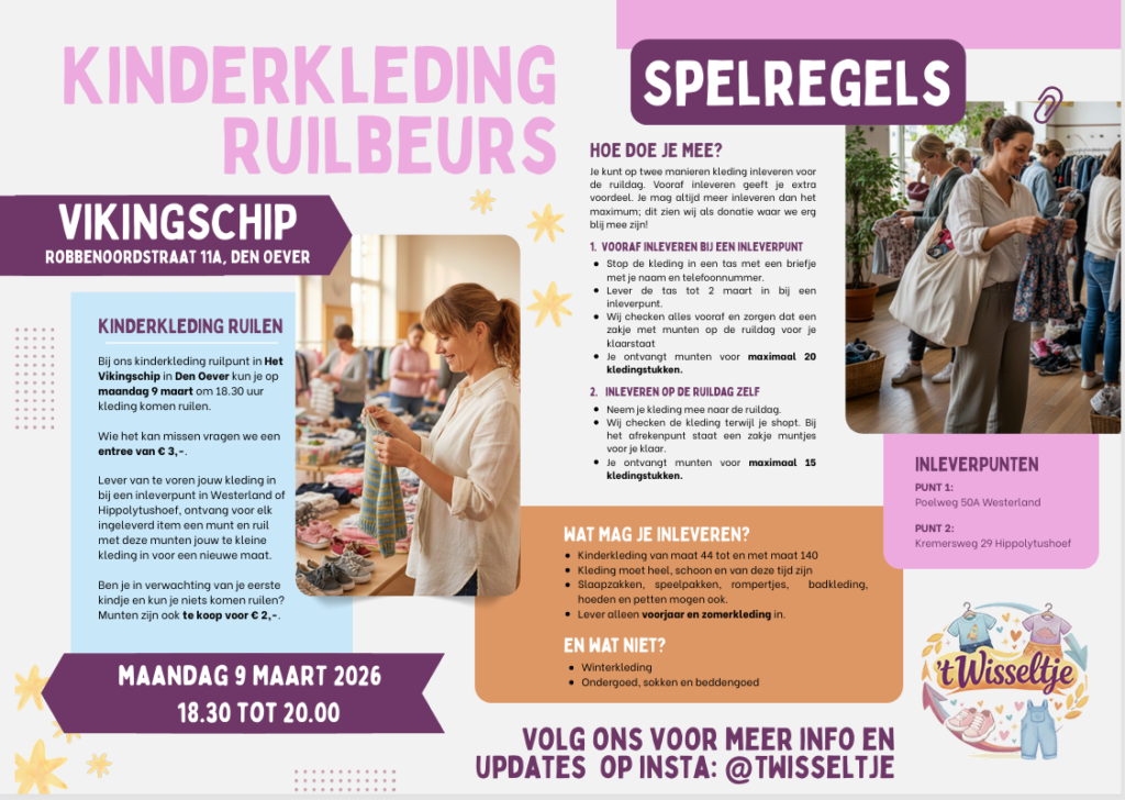 Kinderkleding Ruilbeurs Maandag 9 maart 18:30 – 20:00u